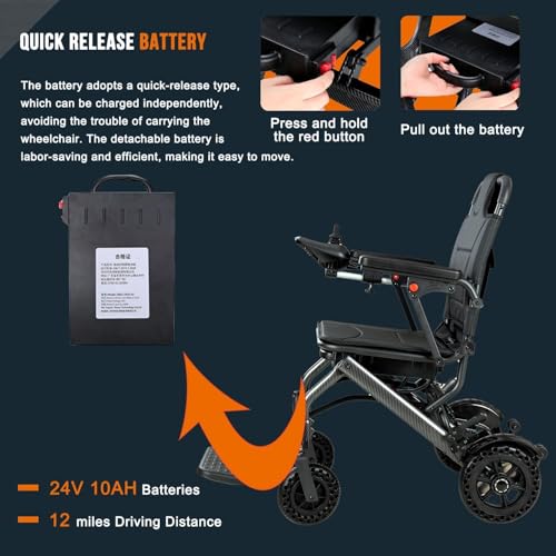 Foldable Electric Wheelchair for Adults, 35 lb Carbon Fiber Power Chair, 18 Mile Range