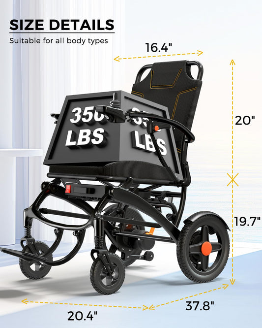 Ultra Lightweight Foldable Electric Wheelchair for Adults, 33 lb Portable Power Chair