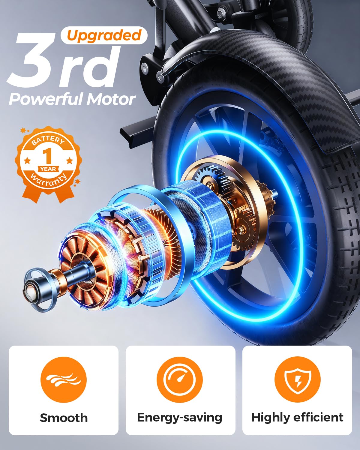 Ultra Lightweight Foldable Electric Wheelchair for Adults, 39 lb Portable Power Chair, 25 Mile Range