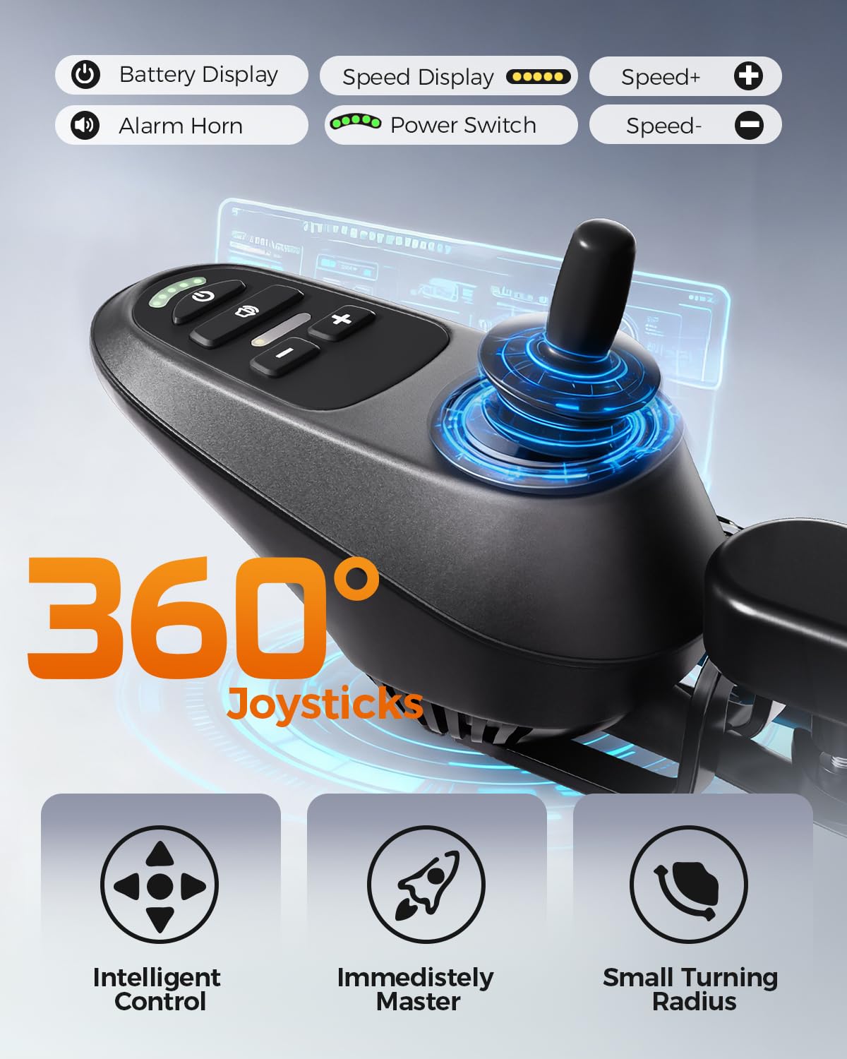 Features a responsive 360° joystick controller for smooth turning and maneuvering in narrow indoor and outdoor spaces.